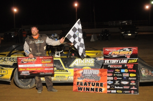 What won the race: Overtaking Logan Roberson of Waynesboro, Va., in the closing laps, former tour champ John Waters of Whitesville, N.Y., led the final three circuits Sunday night at Bradford Speedway to pick up a $3,000 RUSH Crate Late Model Series victory. It was his first win of 2022 on the tour.