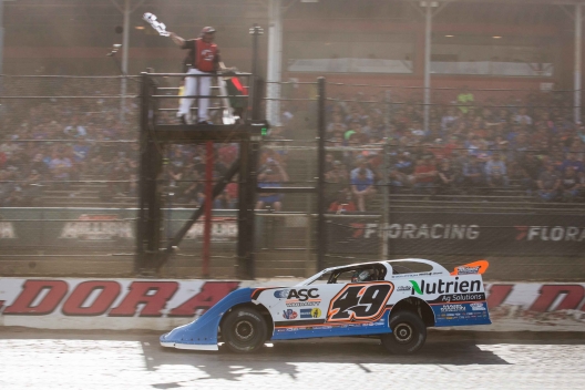 Jonathan Davenport takes the checkers for his $12,000 victory.