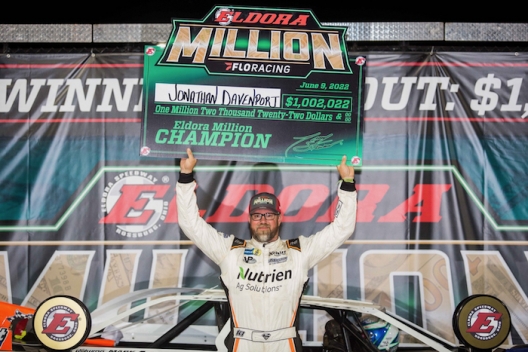Davenport repelled groove-swapping, lead-swapping challenges, first from McCreadie between laps 83-87 and then from Madden on a two-lap shootout to the checkers of the 101-lap Eldora Million to claim a whopping $1,002,022 payday at Tony Stewart-owned Eldora Speedway.