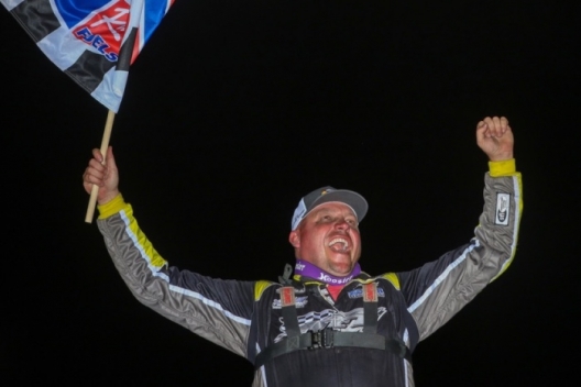 Winning his second DIRTcar Summer Nationals race of the week, Chris Simpson of Oxford, Iowa, won a wild battle up front, fighting off 22nd-starting series points leader Bobby Pierce in the final laps for a $10,000 victory at Fairbury Speedway.