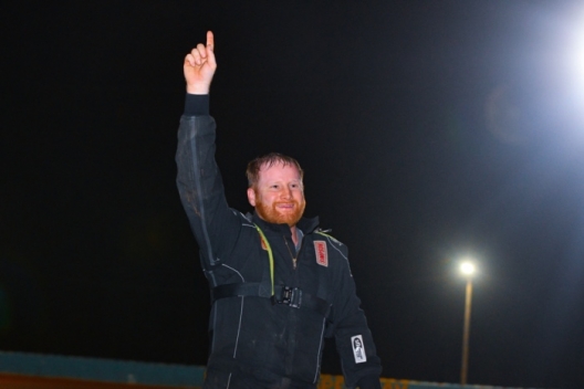 Joseph Joiner celebrates his victory in the SAS debut at Buckshot Speedway.