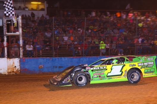 Tyler Erb flashes under the checkered flag to capture Red Hill Raceway's DIRTcar Summer Nationals feature.