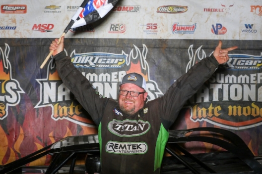 Holding off a relentless low-side charge from Shannon Babb over the final five laps, Jason Feger of Bloomington, Ill., won Sunday’s DIRTcar Summer Nationals stop at Lincoln Speedway. Feger, who hustled the high side for most of the 40-lap main event, stayed there in the waning laps despite Babb’s pressure. Babb, of Moweaqua, Ill., eased ahead on the final lap, but Feger drove back around in the outside as the two approached a slower car exiting turn four. He finished a half-second ahead of Babb to earn a $5,000 payday and his first Summer Nationals win of the season.