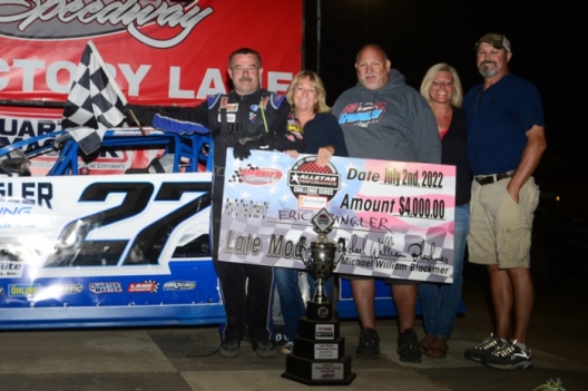 What won the race: Leading all 40 laps Saturday at Merritt Speedway, hometown driver Eric Spangler notched his first Allstar Performance Challenge Series victory of the season. The polesitter earned $4,000 in taking the checkers nearly a full second ahead of runner-up Rusty Schlenk.