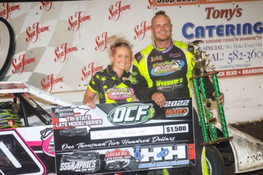 Key notes: Trevor Anderson, the series points leader, notched his first career series victory. ... Fifteen of 17 starters were running at the finish. ... Tri-State competitors raced on the undercard of the track's Lucas Oil Late Model Dirt Series debut, won by Tim McCreadie.