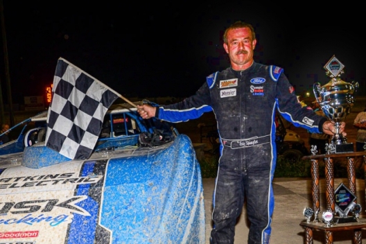 LAKE CITY, Mich. (Aug 6) — Last year, Eric Spangler made all the right moves in the Wood Tic Memorial at Merritt Speedway minus the literal homestretch, when Rusty Schlenk upended what would have otherwise been a dominant victory by the veteran Spangler in a photo finish.