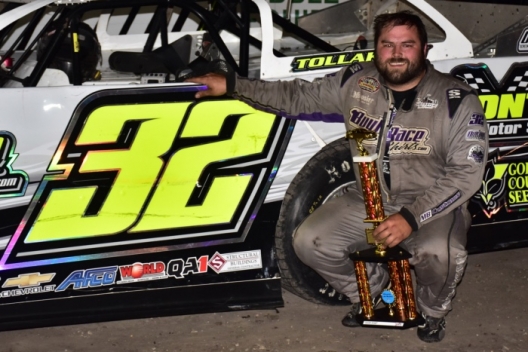 Winner's sponsors: Tollakson’s MB Customs Race Car has Pro Power Racing Engine and sponsorship from BuyRace Shirts, Ice Castle Fish Houses, Asphalt Pros, Gold Country Seed, Montevideo-Granite Falls Co-op, Spud’s One-Stop, Donnelly Truck Service, Enevoldsen Farms, Outlaws Screenprinting & Embroidery, CMD Race Shocks and Exit Realty.