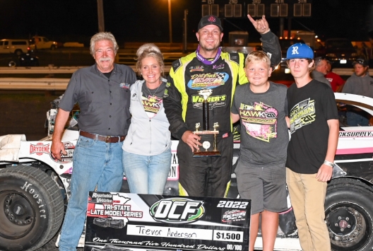 What won the race: Series points leader Trevor Anderson of Watertown, S.D., overtook race-long leader Blair Nothdurft on the 19th of 25 laps Sunday at Raceway Park for his third Repairable Vehicles.com Tri-State Series victory of the season. The fourth-starting Anderson took the checkers 0.882 of a second ahead of 13th-starting Shane DeMey while Nothdurft, who started outside the front row, was third.