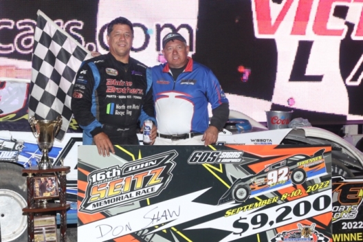 What won the race: Don Shaw of Ham Lake, Minn., took the lead with an inside move on lap 10 and paced the final 83 laps Saturday at River Cities Speedway. winning the 16th annual John Seitz Memorial and the $9,200 payday. Shaw, the 2017 winner, became the fourth driver to claim multiple Seitz Memorial victories.