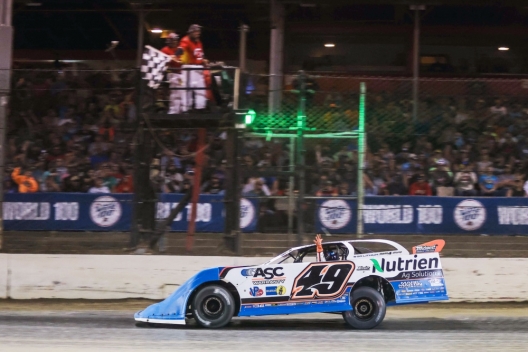 Nine cautions slowed the World 100 action, the most serious for a scramble among backmarkers in turn two after the lap-18 restart in turn two that damaged several cars and knocked Mason Zeigler, Stormy Scott, Spencer Hughes and Chris Ferguson out of the race.