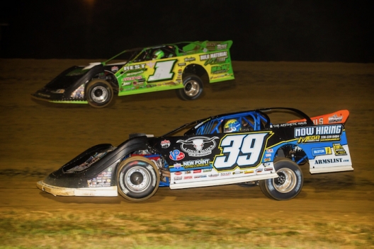 “Just got by lapped cars and kind of broke my momentum there,” Erb said. “I passed him running lower than he was, then I caught the lapped cars and couldn’t pass them on the bottom, so I moved up to the top. I got a couple (cars), and then we literally split the 20 car at the same time and got ahead of me there. Literally at the same time I was going to turn down but Ricky (Thornton Jr.) was there to fill the hole.”