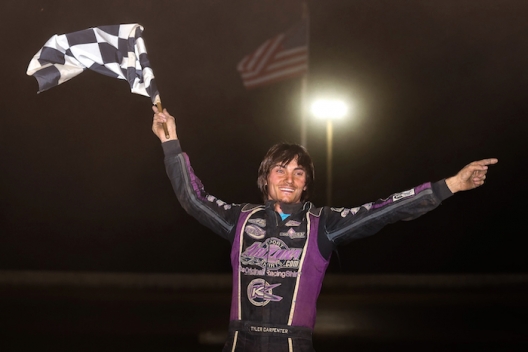 Tyler Carpenter celebrates his $5,000 Harvest 50 victory.