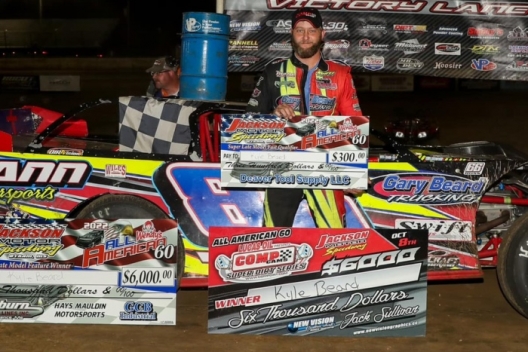 What won the race: Polesitter Kyle Beard of Trumann, Ark., led all but one lap Saturday at Jackson Motor Speedway to earn his third Comp Cams Super Dirt Series win of the year and his third consecutive Wendy's All-American 60 victory. Beard's $6,000 triumph was the 23rd of his career with the CCSDS and he remained the tour's only repeat winner at Jackson.