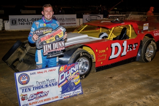 What won the race: Devin Moran of Dresden, Ohio, took the lead with an outside move on lap four and paced the remaining circuits to win Saturday's 40th annual 40-lap Jim Dunn Memorial at Muskingum County Speedway. He earned $10,000 for his second consecutive and third career victory in the event.