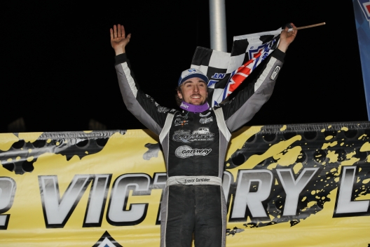 Trevor Gundaker celebrates his first career MLRA series victory at Tri-City Speedway on Friday.