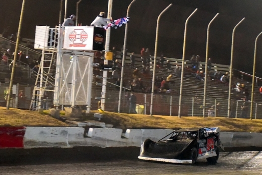 Tad Pospisil takes his final checkers at I-80 Speedway.