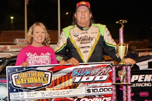 Continuing his epic run of autumn dominance, Scott Bloomquist of Mooresburg, Tenn., invaded Cherokee Speedway and drove to a $10,000 victory in Saturday night’s 24th annual Blue-Gray 100 that was part of the Southern Nationals Bonus Series.