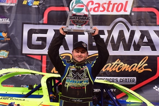 What won the race: Narrowly denying all challengers, second-starting Cody Bauer of Farwell, Mich., paced all 25 laps from the outside front row to capture Friday's Castrol Gateway Dirt Nationals preliminary feature at The Dome at America's Center. He survived a two-to-go bid from Garrett Alberson and beat Wil Herrington to the finish line by 0.483 of a second for the $5,000 top prize.