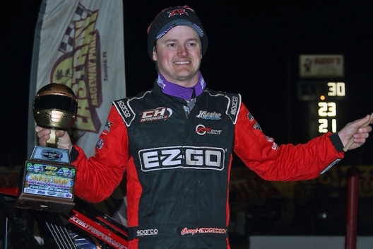 What won the race: Fourth-starting Cory Hedgecock of Loudon, Tenn., took the lead on lap eight and led the rest of the way at East Bay Raceway Park, topping the Crate Racin' USA Winter Shootout Series field and winning Thursday's $2,500 47th annual East Bay Winter Nationals weekend opener.