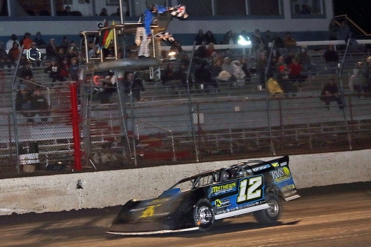 Winner's sponsors: Winger’s Jeff Mathews Motorsports Rocket Chassis is sponsored by Johnny Doan Plumbing, RV Select Inc., Keyser Manufacturing, Integra Shocks, Angry Elephant Tattoo and Piercing, FK Rod Ends, Super K Express, Hoosier Tire, Simpson Race Products, Collins Signs, DirtCarLift.com, VP Race Fuels, Boswell Oil and WrapTeck.
