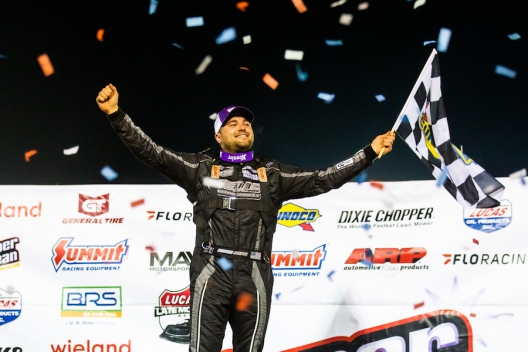 Nosing ahead at the finish, Overton won by a scant 0.056 of a second to complete the improbable last-lap rally and earn the $25,000 to prize. Seventh-starting Tanner English of Benton, Ky., finished third, while Brandon Sheppard of New Berlin, Ill., improved two positions to finish fourth. Hudson O’Neal of Martinsville, Ind., completed the top five after starting alongside Overton on the front row.
