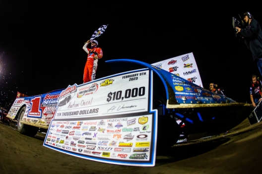 And finally — perhaps the biggest sigh of relief of the entire 2023 Georgia-Florida Speedweeks — O’Neal was able to exhale as he took the checkered flag to complete his first win of the season and first since joining the Rocket Chassis house car team back in the Fall. After a tumultuous start that included almost as many off nights as good nights, O’Neal finally steered the iconic blue No. 1 — now sporting a red roof — into victory lane for new boss Mark Richards.