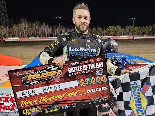 What won the race: Kyle Hardy of Stephens City, Va., regained the lead on lap six and never looked back, pacing the final 25 circuits at Delaware International Speedway to capture Wednesday's $3,000 Battle of the Bay Speedweek opener. Hardy, the 2021 RUSH Crate Late Model champion, earned his fourth Battle of the Bay feature victory and his first at Delaware International.