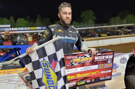 What won the race: Seventh-starting Kyle Hardy of Stephens City, Va., took the lead on lap 12 and cruised to win Friday's $3,000 RUSH Crate Late Model feature at Potomac Speedway. Hardy notched his 10th career RUSH main event win and his second Battle of the Bay Speedweek triumph of the week after topping Wednesday's $3,000 opener at Delaware International Speedway.