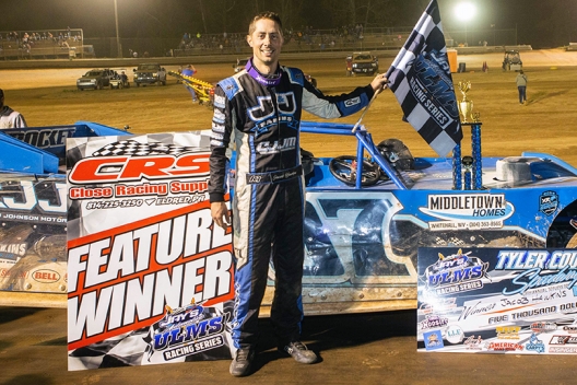 Key notes: Hawkins, who restarted fourth with seven laps remaining, was forced to tag the field after spinning to avoid a crash on lap 19. ... After leading 48 laps from the pole, Smith of Dallas, N.C., settled for the runner-up position. ... Tyler Emory advanced five positions and finished third. ... Rod Conley and Cody Rogers each gained three positions, finishing eighth and 10th. ... Tyler County's Topless 50 is the second-longest tenured topless event in the country, second only to Batesville's Topless 100. ... Saturday's feature was slowed by four separate incidents (lap 1, lap 1, lap 19, and lap 43). ... Del Rougeux and RJ Dallape were offered ULMS Series provisionals, but opted not to utilize them.