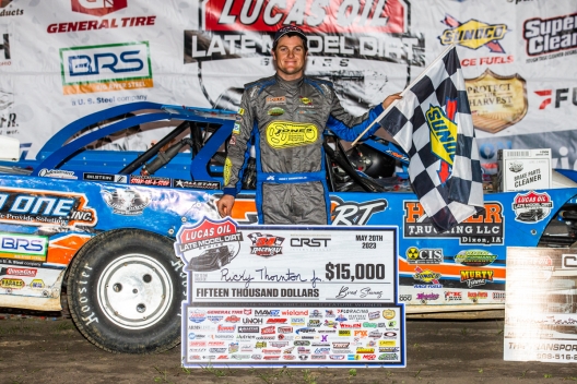 Winner's sponsors: Thornton’s SSI Motorsports Longhorn Chassis is powered by a Clements engine and sponsored by Dyno One, Hoker Trucking, Certified Inspection Service, High Performance Lubricants, Big River Steel, Van Meter Insurance Group, Murty Farms, D&E Outside Services, West Side Tractor Sales, Bilstein Shocks, FK Rod Ends, Allstar Performance, Barnes Pumps, Performance Bodies, Winters Performance, Strange Oval, Accu-Force, Quickcar, Sunoco Race Fuels and Sub-Surface of Indiana.