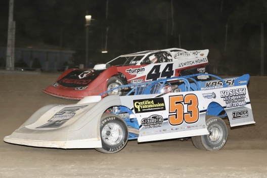 Andrew Kosiski (53) worked underneath Luke Goedert (44) en route to winning his first career Hoker Trucking Series feature.