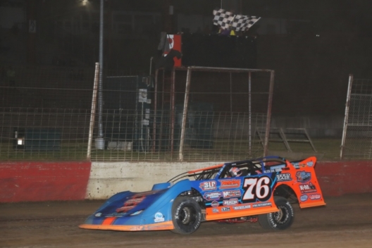 Jason Hahne takes the checkers for $3,000 at Dubuque Speedway.