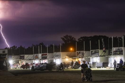 Key notes: Rain that threatened Saturday’s event throughout the evenint hit the 5/8-mile oval just after 10 p.m. and forced the postponement of the $50,000-to-win main event. ... The decision was made shortly before midnight after WVMS promoter Cody Watson met with Lucas Oil Series director Rick Schwallie and competing drivers, but track and series officials did not immediately anounce a makeup date for the feature. ... Officials were explicit the race won't be rescheduled for Sunday so teams can prepare for next weekend's Dream at Eldora Speedway in Rossburg, Ohio. ... Lucas Oil Series officials had told teams before the rain struck that the scheduled 50-lap feature would be shortened to 30 laps due to concerns over dusty track conditions. ... Ricky Thornton Jr. of Chandler, Ariz., who captured Friday’s $10,000 preliminary feature, was set to start on the pole position of the A-main after setting fast time and winning the first heat. ... Jimmy Owens relinquished the lead on lap two of the third heat due to a broken ring and pinion. ... Hudson O'Neal's Rocket Chassis house car sustained right-side body and suspension damage when he slapped the wall in turns three and four while getting up to speed during qualifying; he didn't log a timed lap but came back to finish fourth in Heat 1 after his crew made repairs. ... Thunderstorms threatened the track following hot laps — after which drivers complained of excessively dusty conditions — but rain never hit and track officials watered the surface for another round of practice. Time trials finally began at 8:30 p.m.