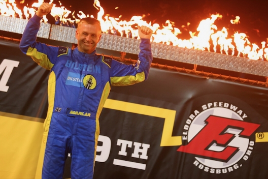 ROSSBURG, Ohio (June 9) — Mike Marlar’s most anxious moments during Friday’s Dream XXIX preliminary feature at Eldora Speedway likely had nothing to do with runner-up Jonathan Davenport. Instead, posing the biggest danger to Marlar’s success was slower traffic, including a gaggle of cars right in front of him as the laps wound down in the 25-lap, caution-free race.