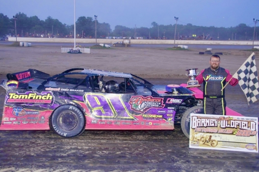 What won the race: Sixth-starting Rusty Schlenk of McClure, Ohio, powered around the outside of Carter Murday on a restart just before halfway and cruised to win Saturday's $5,000 34th annual Barney Oldfield Memorial at Oakshade Raceway. ... Schlenk pulled away to score a commanding victory, securing his fifth career Barney Oldfield event triumph, leading all drivers.