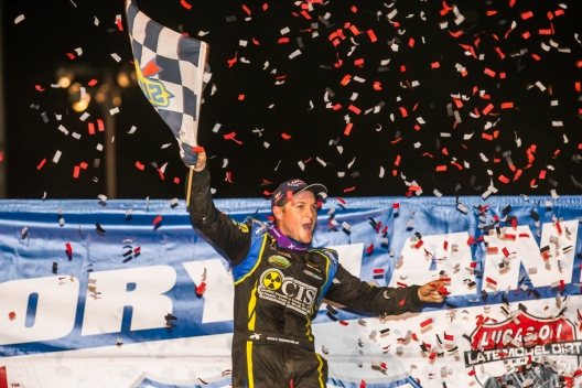 Thornton easily handled restarts on laps 42 and 46 to cross the finish line 2.508 seconds in front of Watertown, N.Y.’s Tim McCreadie, the reigning Lucas Oil Series champion who settled for the $15,000 runner-up check ins Paylor Motorsports Longhorn car after grabbing the position from Hudson O’Neal of Martinsville, Ind., following the lap-46 caution period.
