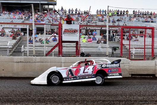 Kyle Berck takes the checkers at Huset’s for his $5,053 victory.