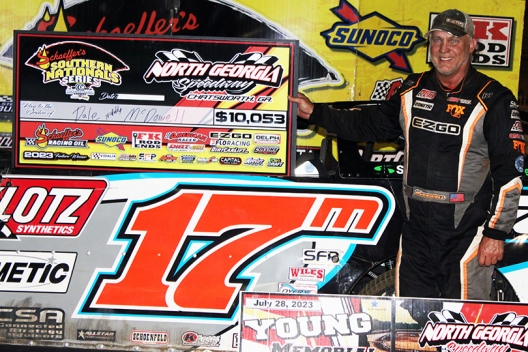 CHATSWORTH, Ga. (July 28) — Updates and results from the seventh round of the Schaeffer’s Southern Nationals at North Georgia Speedway, an event highlighted by a $10,053-to-win feature for Super Late Models (results unofficial):
