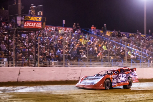 Polesitters Michael Chilton, Nick Hoffman and Bobby Pierce swept to victories in the first three heats … Chilton and Pierce will start on the front row of the night’s first 25-lap prelim. … Matt Cosner won from his third starting spot in the fourth heat, finding his way past front-row starting teammates Vic Hill (on the fifth lap) and Garrett Smith (narrowly at the checkers) for a victory that gave him the fourth starting spot in the night’s first semifeature. … Former track champ Robby Hensley got a poor start in the second heat, but after slipping back to fourth initially, he roared down the frontstretch to regain third from Devin Moran and finished in that spot. … Chris Ferguson salvaged a fifth-place finish in the final transfer spot in the third heat despite running most of the race on a flat left-front tire.