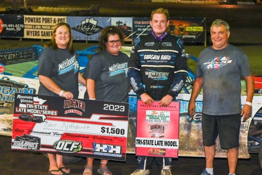 What won the race: Sixth-starting Blair Nothdurft of Renner, S.D., took the lead on lap five and paced the remainder of the distance to capture Friday night's 25-lap Repairable Vehicles.com Tri-State Late Model Series feature at Wagner Speedway. Nothdurft collected his first win of the season and the seventh of his career on the tour.