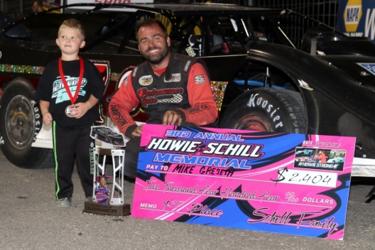 What won the race: Third-starting Mike Greseth of Harwood, N.D., used an inside move to take the lead as race-long leader Tyler Peterson became mired in lapped traffic and paced the final 17 laps to win Friday's $2,404 third annual Howie Schill Memorial at Red River Valley Speedway. Greseth earned his third Northern LateModel Racing Association victory of the season and the 14th of his career.