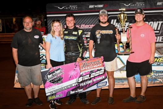 Winner's sponsors: Winger’s Jeff Mathews Motorsports Rocket Chassis is powered by an Andy Durham Racing Engine and carries sponsorship from Johnny Doan Plumbing, RV Select Inc., Keyser Manufacturing, Integra Shocks, Angry Elephant Tattoo and Piercing, FK Rod Ends, Super K Express, Hoosier Tire, Simpson Race Products, Collins Signs, DirtCarLift.com, VP Race Fuels, Boswell Oil and WrapTeck.