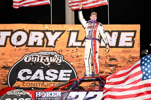 That became clear when 26-year-old star from Oakwood, Ill., drifted his car to a stop in turn four on his cool-down lap after capturing Saturday night’s 50-lap Labor Day Duel at Deer Creek Speedway. He took off his helmet, slithered out of his seat to sit on the left-side window, and signaled to World of Outlaws Case Late Model Series officials that he needed a push to the scales in the pit area outside the first corner.
