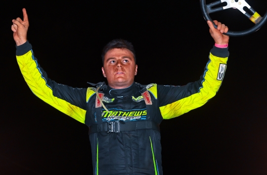 Winner's sponsors: Winger’s Jeff Mathews Motorsports Rocket Chassis is powered by an Andy Durham Racing Engine and carries sponsorship from Johnny Doan Plumbing, RV Select Inc., Keyser Manufacturing, Integra Shocks, Angry Elephant Tattoo and Piercing, FK Rod Ends, Super K Express, Hoosier Tire, Simpson Race Products, Collins Signs, DirtCarLift.com, VP Race Fuels, Boswell Oil and WrapTech.