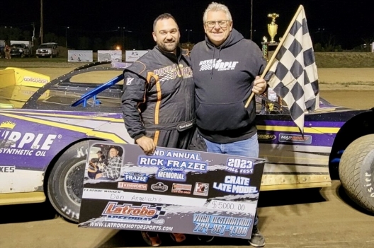 What won the race: Taking the point from race-long leader Colton Flinner on lap 24, Dan Angelicchio of Greensburg, Pa., paced the remaining distance to win Saturday's second annual 40-lap Rick Frazee Memorial at Latrobe Speedway. Angelicchio grabbed his first unsanctioned 604 Crate Late Model feature victory of the season at the western Pennsylvania oval.