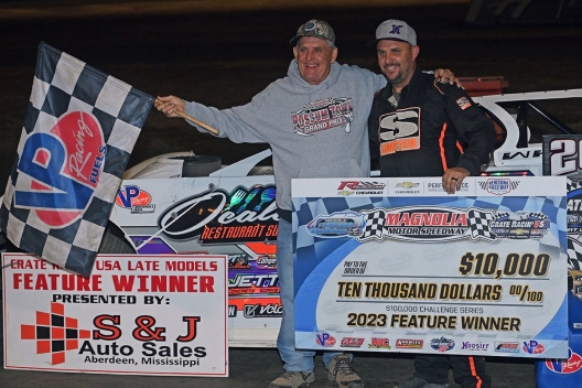 Magnolia co-owner Johnny Stokes (left) and Mark Whitener in victory lane.