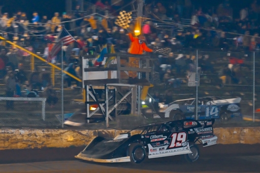 Spencer Hughes Saturday's flashes under the checkered flag to capture Saturday's Southern All Star feature at North Alabama Speedway.