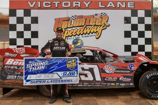 What won the race: Fending off a late-race challenge from Devin Moran, pole-starting Mike Marlar of Winfield, Tenn., led all 40 laps to win Sunday's rain-postponed $12,000 Spring Thaw opener at Volunteer Speedway. Marlar mastered the XR Super Series field for his second career victory — his second in as many days after topping Saturday's $30,000 headliner — while collecting a total of $42,000.
