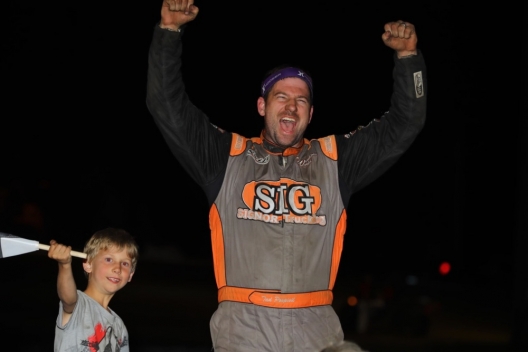 Tad Pospisil celebrates at Central Missouri Speedway.