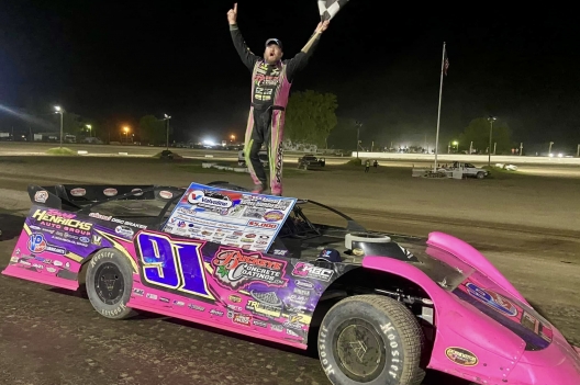 Rusty Schlenk celebrates his sixth career Barney Oldfield Memorial victory.